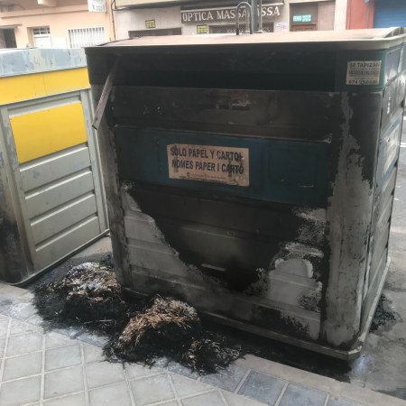 Incendio en un contenedor de papel al lado de otro que está quemado desde 2017