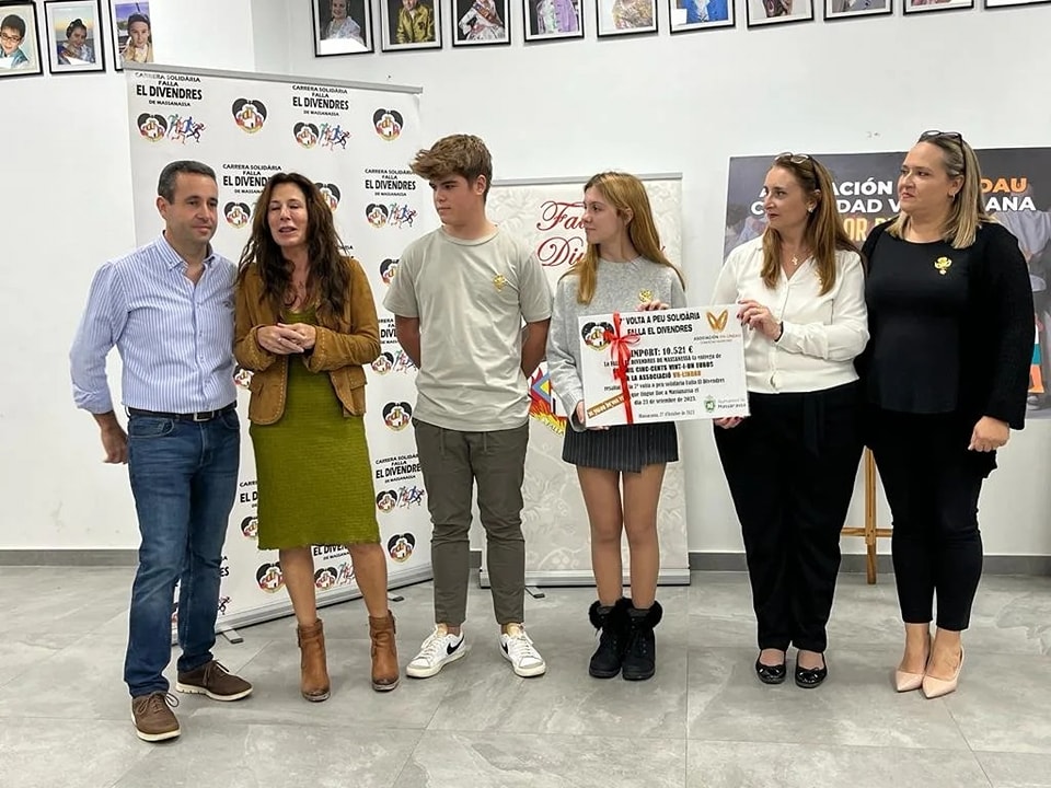 L’associació VH-Lindau, dedicada a afavorir la investigació i la millora de les condicions de vida de les persones que patixen l’infermetat rara ‘Von Hippel Lindau’, ha rebut el taló aconseguit per la Falla El Divendres de Massanassa en la seua 7ª Carrera Solidària.