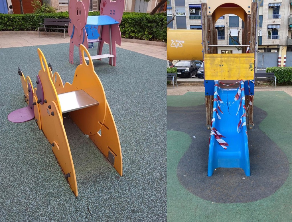Pasan los meses y todo sigue igual, o peor. Esta es la queja generalizada de las familias de los menores que acudían a jugar a los parques de l’Alqueria de Sòria y de la Plaça del Mercat, más conocido como «Parque Pocoyó» por el diseño de los muñecos que en algún momento tanto gustaron a grandes y pequeños.